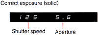 1 ) Gently press the shutter button halfway down to check the exposure. Exposure will be correct unless the aperture value and/or the shutter speed blink in the viewfinder.
