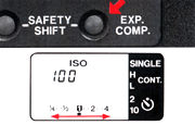 it for exposure compensation. At the bottom of the viewfinder, "+/ - "