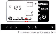 4) To cancel the exposure compensation, move the " ~ " dot back to "[1]"