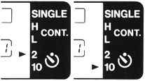 the palm wing or move the film winding mode/self-timer selector off the " @