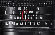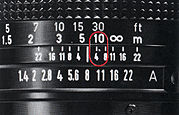 2) If, for example, the lens is focused at 10 m on the distance scale turn the focusing