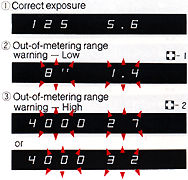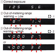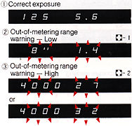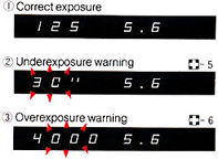 When the shutter speed and/or the aperture value blink at 4 Hz in the viewfinder, exposure will be incorrect.