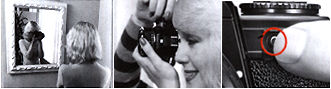 To take good pictures, you should first learn how to handle your camera properly. Hold the carnera with both hands, as shown in the pictures, cushioning it in the palrn of your left hand. For added support, prop your left-hand elbow against your body. Before loading the camera with film, practice in front of a mirror until you have mastered all the controls. Exposure compensation button: Depressed with the lefthand index finger. | Message Board |
