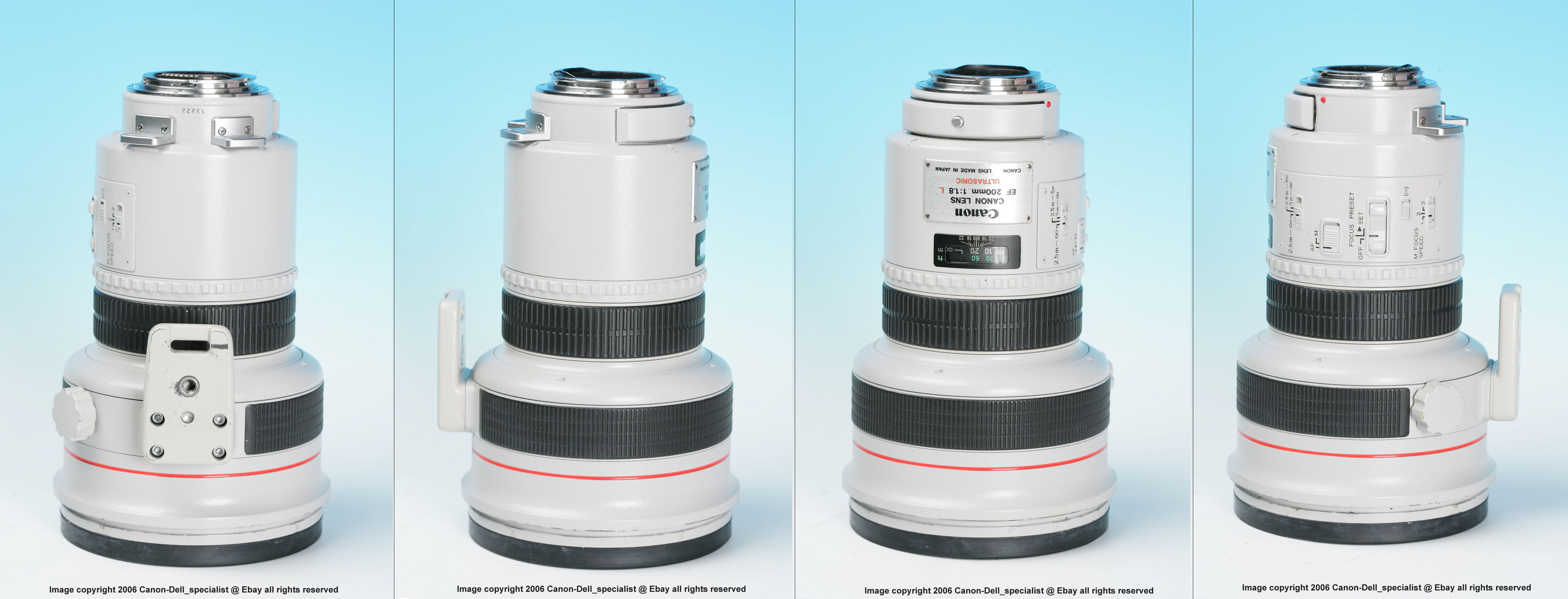 Credit:- A highly recommended article by Marco Cavina, Italy who has prepared some of the optical analysis as well as the FD-EOS Converter. It was written in Italian but you can make use of Google utility to translate: http://googleSo, while competitions like Nikon was still struggling in providing a workable autofocus solution for Nikon photographers during the late 80 to match the superiority of the EOS/EF combination (other than the AF Nikkor 300mm f/2.8 ED IF, the distance chip equipped Nikkor 500mm f/4.0 IF-ED P (1988) was essentially a non-AF super tele and the first batch of super-tele autofocus such as the AF-I 500mm f/4D IF-ED and AF-I 600mm f/4D IF-ED were only introduced in 1993 !); on the other hand, Canon EF lens group already was equipped with four super-tele in the Canon EF 300mm f/2.8L (1987), EF 400mm f/5.6L, EF 600mm f/4L (1989) as well as this 1989's Canon EF 200mm f/1.8L ever ready for Canon photographers on the working field. And by the time the AF-I Nikkor came to the market, Canon has expanded the professional EF super-tele group with even more options in the various Canon EF 300mm f/4.0L (1992); EF 400mm f/2.8L (1992/3), EF 500mm f/4.5L (1993/4).. So, the success of Canon EOS system over the others was not coincidental as it took a very well schemed effort in analyzing weaknesses of its opponents on the market place.