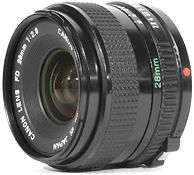 Marketed: 04.1987; Status:- current modelThe Canon 28mm f/2.8 was offered as one of the original batch of autofocus EF lenses with the first EOS camera model of Canon EOS 650 and the semi pro model of Canon EOS 620 back in 1987. It is a standard wide-angle lens featuring good features in its very high quality image resolution, compact size and light weight. With an angle of view broader than a 35mm, while not as distorted as the ultrawide of 24mm, making it suitable for PR & family photography (especially with flash), casual snap shot, landscape and architectural photography.