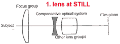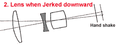 2. The Principle of the Image Stabilizer Whenever the camera vibrates due to hand shake or other causes while the shutter is open, the light passing through the lens also vibrates, and the results are recorded on the film as a blurred image. The image stabilization system built into the EF75-300 f/4-5.6 IS USM lens causes a portion of the lens groups (compensative optical system) to move in parallel with the external movement, refracting the light rays in a direction that neutralizes the camera movement and holds the light rays steady as they reach the film surface. The result stabilizes the image. (see illustrations below):-