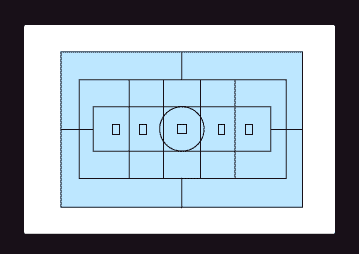 The 16-zone evaluative metering pattern and focusing point linkage. The five focusing points which handle independently for each focusing point are in zones A0 to A4 respectively. Actual metering is carried out as shown, the light metered in the subject zones, intermediate zones, and peripheral zones is compared, and exposure compensation is set in 1/4 stops (in 0.25-stop increments) added when necessary.