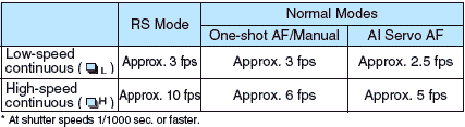Low-speed/High-speed continuous shooting For as long as the shutter button is pressed completely, continuous shooting will continue at the speeds shown in the table below;-