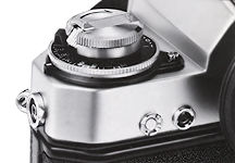 The EL2's viewfinder eyepiece is fitted with a protective cover glass as standard. Unscrewing the cover glass exposes the threaded eyepiece ring which accepts standard Nikon eyepiece accessories. These include eyesight correction lenses, rubber eyecup, magnifier, right-angle viewing attachment and eyepiece flash ready-light.Basic Operation | Shutter Mechanism | Lens Mount | Exposure Control | Viewfinder info | Metering | Flash | Film Advance (Auto) / Transport