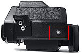 If you are coupling the handle mount flash such as Nikon SB-5 with a Nikon F2 model that has a Photomic finder, the SB-5 uses Ready-Light Adapter SC-4 to operate the flash ready light in the Photomic viewfinder eyepiece. Note: Nikon F and F2-series cameras use this special Nikon hot shoe that surrounds the camera rewind knob. Grooves on each side and spring-loaded rails below grooves hold the flash foot securely in place. Electrical contact at the back is used to fire flash. Small electrical contact on side of viewfinder housing (arrow) also makes contact with flash foot and is used to operate flash ready-light in viewfinder eyepiece.
