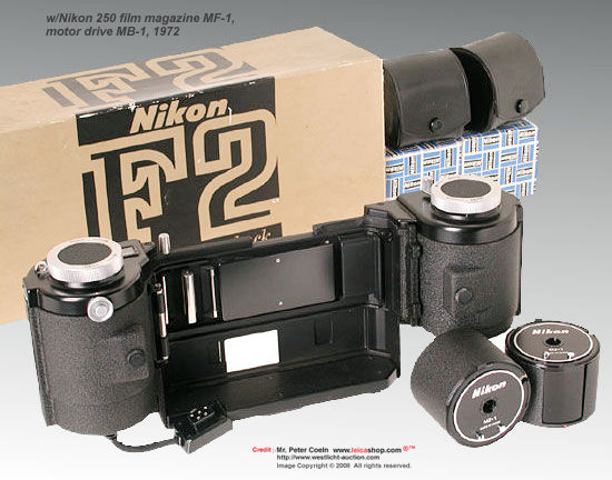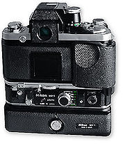 Two fabulous views of a MD-1 mounted onto a Nikon F2 and F2S with 250 bulk film magazine back where I scanned them from the same marketing leaflet which I bought.