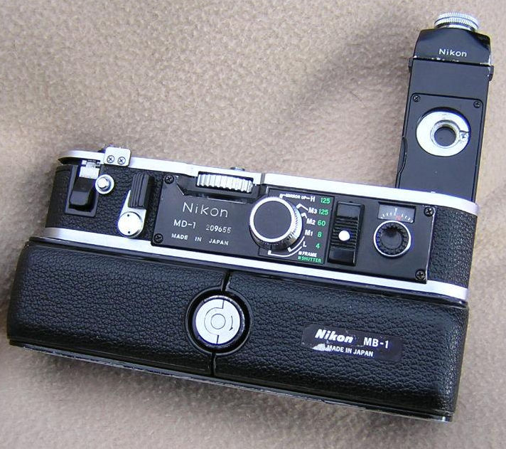 Nikon MD-1 was introduced along with the Nikon F2. Barely less than two years later, it was replaced with an upgraded MD-2 which has identical basic features, appearance and operational sequences. The MD-2 remained as the "premium" grade Motor Drive for Nikon F2 series bodies until the F2AS was finally discontinued in 1980 and replaced with the Nikon F3. It is very difficult to locate a MD-1even at the used market and I am still locating for some good pictures so as to replace these pictures that I scanned from an early '70 marketing leaflet that I eventually bought from John Craig just to fill-up this missing part from this F2 site !