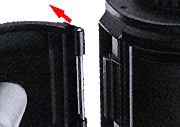 Slip the outer shell onto the inner shell so that their cutouts are aligned with each other. Then twist the inner shell clockwise gently until it stops with two clicks. Now the catch of the inner shell falls into the recess of the outer shell, closing the cassette completely and sealing it against light. The loaded supply cassette can now be taken out into the light.