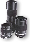 3) Bellows Focusing Attachment PB-6. The PB-6 is also attached between the lens and camera body. Exposure is determined by the stop-down method. The beauty of this accessory is that you can change magnification continuously by extending the bellows.4) Micro-Nikkor 55mm f/2.8, 105mm f/4 and 200mm f/4 IF. These specially designed lenses offer continuous focusing from infinity to down to 1/2x life size. To obtain 1/2x to 1x magnification with an AI Micro-Nikkor lens, the use of an auto extension ring is required: the PK-13 for the 55mm f/2.8, and the PN-11 for the 105mm f/4; to obtain magnifications from infinity up to 1x with the 200mm f/4 IF, use the Nikon Teleconverter TC-300. Even with these accessories, exposure is determined at full aperture. Note that in close-up photography, depth of field is generally shallow. Thus you should stop down as much as possible when photographing a subject with great depth.