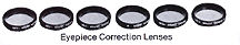 These are accessory lenses that screw into the viewfinder eyepiece to enable near- and farsighted photographers to take pictures without having to wear eyeglasses.Nine models are available, offering a choice of the following dioptres: -5, -4, -3, -2, 0, +0.5, +1, +2 and +3; the dioptres represent the combined dioptre of the viewfinder and the lens, and not the dioptre of the eyepiece correction lens only.