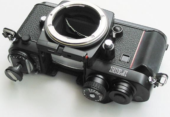 The camera also uses a DE-4 special prism similar to those used on the F3-P (Press) and F3 Limited that has a standard ISO-type accessory shoe on top of the viewfinder prism (It is Non-TTL but only AUTO and manual flash is possible, the standard F3's accessory still permits TTL flash exposure control).