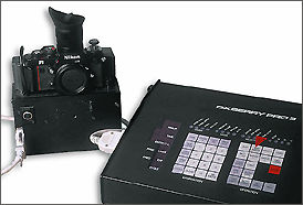 or 24 exp. roll film. Computerized controller moves film with exact pin registration