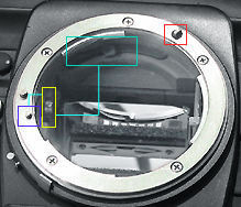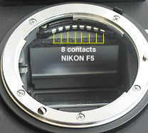 While both AF coupler (body side) and the AF coupling (lense side) remains the same on Nikon F4 and Nikon F5; the electrical contacts in the Nikon F5 has an additional one. Inside the lens mount, other than the aperture stopped down lever, other basic coupling and levers such as Focal length indexing pin, Lens speed indexing lever and Lens type signal pin was removed in the subsequent Nikon F4. Check the lense compatibility section for more info.
