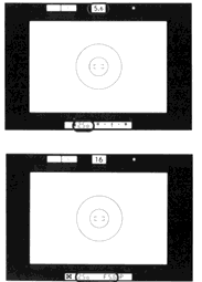 * When camera's exposure meter is on, the shutter speed and aperture set on the F4/F4s body is always shown in the MF-24's LCD. (With camera's exposure mode at A or M, the aperture shown in the MF-24's LCD may differ from that displayed in the camera's aperture direct-readout window.) Shutter speed and aperture display cannot be adjusted on the MF-24.