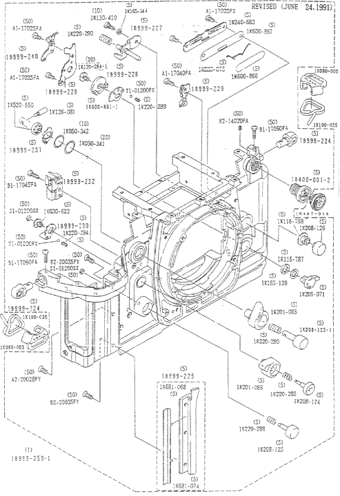 Don't believe ? Click to see two scanned images with just the top right hand panel and another is a front section assembly of the camera (without even shown the lens mount assembly.Well, be able to screeze in all these essential components (the Multi-Meter Finder itself is consists of another 200 parts and the shutter unit, 200 parts) inside a relatively compact camera body is one thing but to ensure this camera can also deliver equaling a previously set-standard in durability and reliability of how a Pro-level SLR should be judged while at the same time, ensuring all it has to offer in various sophisticated features will function flawlessly is another big task during its designing stage. Just like the F3, the priority is how to protect all the sensitive electrical and electronic components within. So, it started with the Nikon F4 backbone which uses a solid aluminum-alloy die-cast body structure for superb strength, rigidity and resistance to corrosion. The die-cast body consists of a front body, rear body, finder mounting section and hand grip.