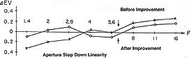 The improvement ensures more accurate exposure control as shown in the graph below, but the reference value for shutter speed adjustment on A mode has been changed to 7.29.ms.