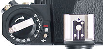 The center portion is the accessory shoe. It serves as the direct connection between TTL/Manual flash operation with the camera. The left section is far simpler than the right, it controls film speed indexing, exposure compensation during auto mode and film rewind action after completion of film roll.One beauty of the FM3a is in its sheer simplicity of camera control and operation. The camera has two basic exposure/operating modes (AUTO or Manual control), It is still extremely easy to understand and operate, even for beginners. If you are new to SLR photography, for a start - simply set the shutter speed to 'A' setting - then depending on your personal objectives and the desire effects, you can select any aperture value on the lens and shoot. Most likely, under normal circumstances, you should able to get satisfactory and accurate exposures.(refer to the manual section).