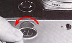 Attaching the Motor Drive [1]. Remove the motor drive socket cap. Remove the motor drive socket cap from the camera base plate by rotating it counterclockwise with a coin. To replace the cap, align the index dot on the cap with the index dot on the camera, press and turn the cap clockwise with your finger to engage the threads and then continue turning with a coin until tight (less than a quarter turn).