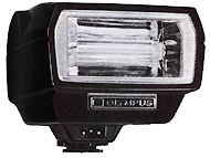 <<-- Olympus non-TTL Quick Auto 300 flashWith a guide number of 34 (ASA 100, meters), this is the most powerful! flash unit generally available, offering a wide coverage to give even illumination throughout the picture area of a 24mm super wide-angle lens. It provides fully automatic flash capability at f4, f5.6 & f8. Hl and LOW manual settings are possible. Also incorporates an auto check lamp. Working off 4 penlight batteries with any direct contact camera. Can be used together with the Bounce Grip, permitting a choice of various power sources.