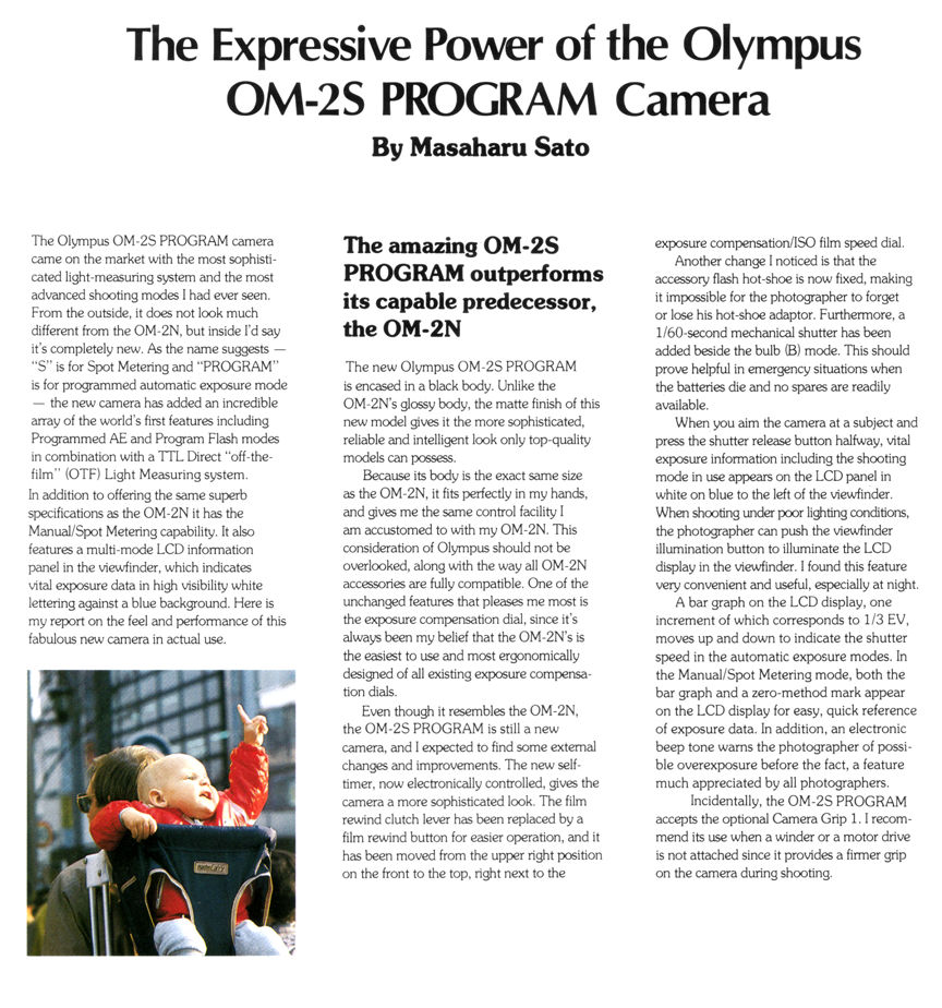 One fine morning, there was a "mysterious" gentleman dropped by my office and left a stack of Olympus VisionAge books to my secretary. He never mentioned his name. In the Volume 3 (03/85), I have found a few detailed articles relating to the OM2SP. The first was written by Mr. Yoshihisa Maitani and another was more like an illustration but it termed as a technical test report by Mr. Masaharu Sato.