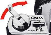 Auto film rewinding: The motor automatically stops when rewinding is completed (with OM2SP, OM-20, 30, 40, OM3 & OM4 series).