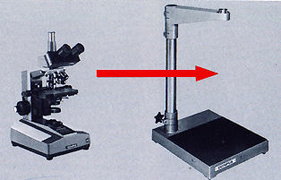 The weight and solidity of a separate stand alone, tends to reduce any transmitted vibration. Other bench vibrations are absorbed by the stand's rubber feet and a rubber mat minimizes transmission of vibration from the microscope. Camera and microscope operation is not impaired by the use of the stand, and all controls remain fully accessible. The Photomicro Adapter L or H is required for use with the OM body.