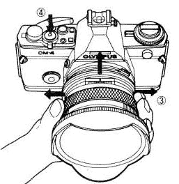 Setting the correct exposure 1) The viewfinder will show correct exposure ONLY when the lense is NOT shifted. If the lense is shifted, the indication MAY bary, but on AUTO mode, correct exposure will be formed.