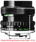 Aperture scales: f/3.5~ f/22 (35mm); f/4.8 - f//32 (70mm)