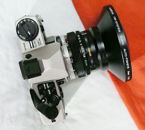 <<< --- Credit: This image was specially taken by Mr. Jone Quinn <laozi00000@hotmail.com> for this OM project. Jone Quinn runs a popular Ebay Store and he specializes in selling OM photo gears. Image copyright © 2003 All rights reserved. Please respect the visual property of the contributing photographer.Fisheyes of both kinds are available in the ZUIKO Lens Group: - the 8mm Fisheye which forms an image 23mm in diameter, and the 16mm which produces images covering the full film size by cropping a circular image of 44mm in diameter. Because of the extraordinary angle of view, the photographer has to take certain precaution when using a fisheye lense, Naturally, the Protruding front surface must be protected with a cap when changing lenses and film, But more important, before taking the picture he must check the viewfinder to make sure the legs of his tripod. his head and his feet do not appear.