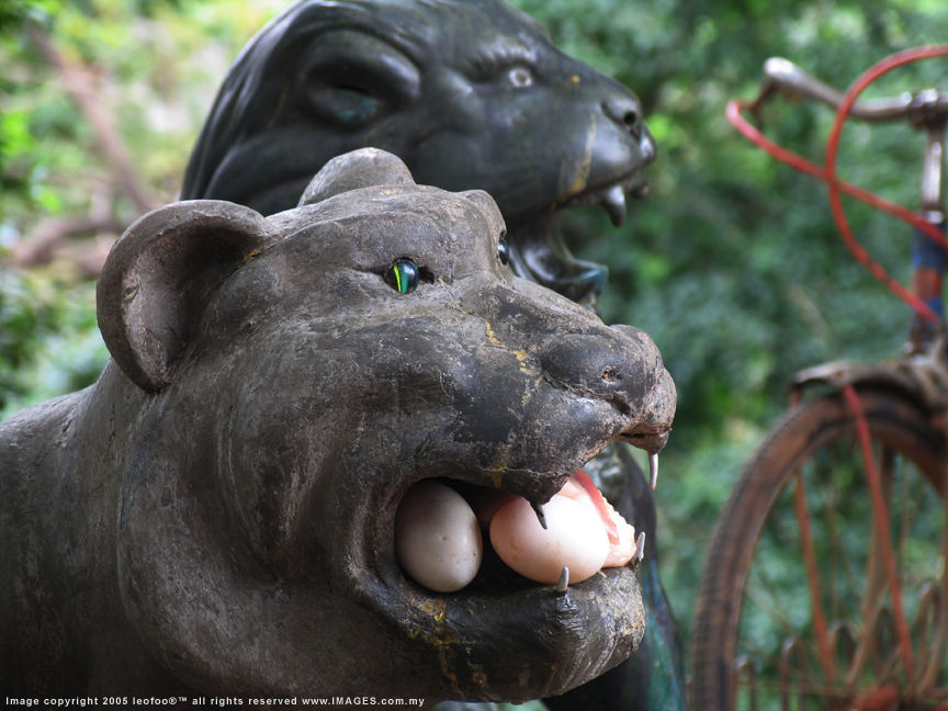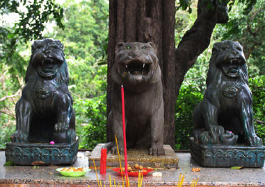 The black-bodied three lions (or leopards ?) is another popular spiritual spot for local to perform family matters (mainly protection from evil and intrusions by others). One popular mean is to feed the leopard with eggs. I witnessed a even of spiritual ceremony where you can also ask the temple's assistant to perform the task for you. The black leopard (still wondering was it a leopard..) has a green crystal in its eyes.