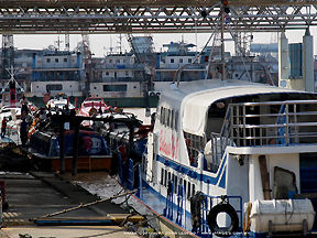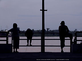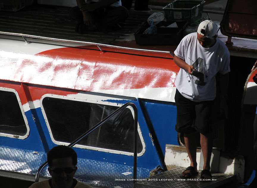 A casual, quick grabbed shot of an unidentified man waiting to board the ever-busy harbour/jetty which acts as the main gateway to other smaller towns and locations up or downstream. |