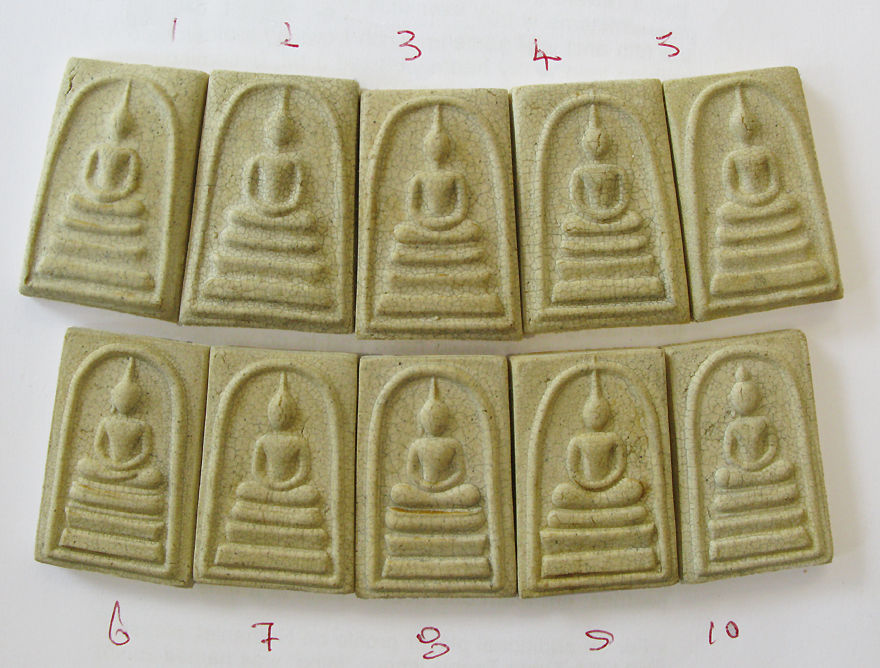 You can either treat it as a collectible to appreciate the antique craftsmanship how those molds used for this set had produced all those famous Soomdej images over the years and/or split the units for friends, associates or family members as personal gifts. The above showcased Pims are lining up from left to right, each cased units in different velvet fabric to differentiate the versions and the case came with a sticker labeled the variation from 1 -10.