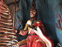 The side structure of Ling Xian Yan has a separate section to host the Mei Hou Wang (Hansome King of all Monkeys or simply referred as Monkey King) which depicts from a popular Chinese novel, Journal to the West. He was one of the three (Pigsy and Sand Priest to assist (Tang) Xuan Zang, a Buddhist Monk, to make his pilgrimage across western China to the origin of Buddhism (India) in order to bring back the sutras for the Buddhist in China. The character is famed for his antics of trickery, deceit, disobedience but it has established itself as a legend on his own.