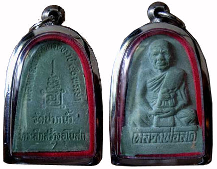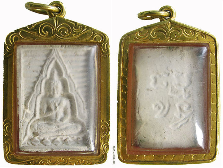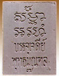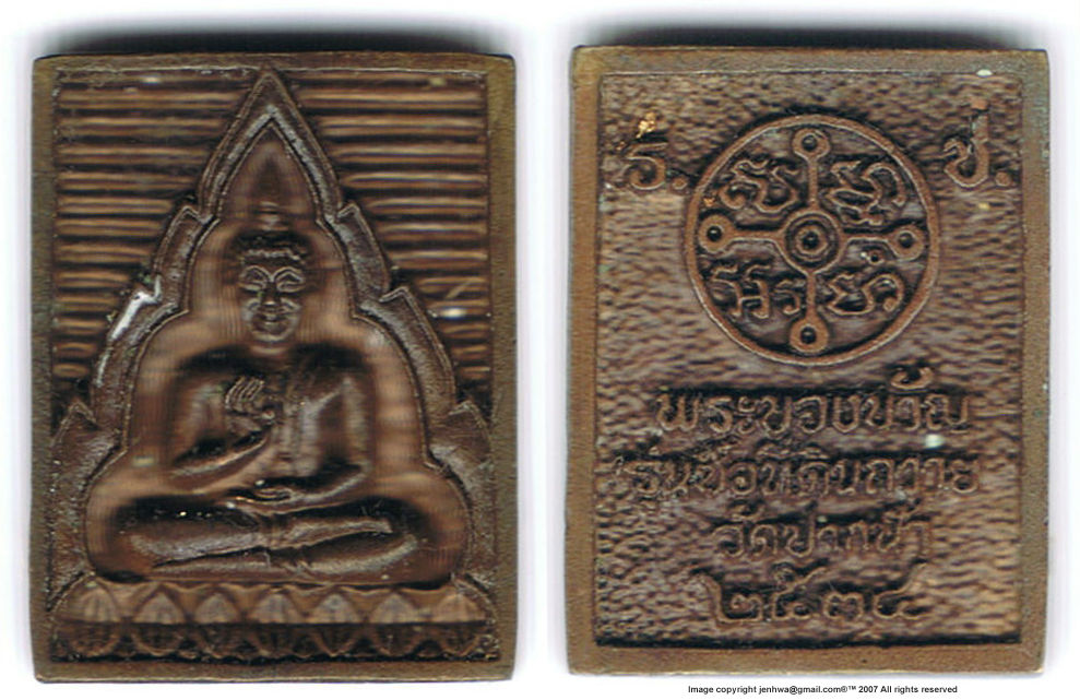 This metal pendant was distributed "free" by the current Abbot of Wat PakNam and I don't think they are meant for sale. See the bowl of these pendant next to the chief at the earlier pages. But I notice he doesn't just give away to everyone that come to worship him. Another view in the plastic oval-shaped casing. You may lend a hand in the development of this section.Credit: Mr. Thanin Boonrod