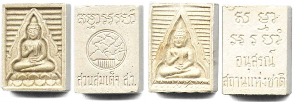 The fifth batch was different in two main areas. Firstly - it departed from any of other Wat Pak Nam classic form of rectangular shape. Secondly, it is significantly smaller in its overall dimension (see a comparison of two images below). I had recently given one of these and thought it makes a good amulet for ladies due to its smaller size. The few basic form in the 5th batch may separated into Wu Thong, Jiang Saen, Sukhothai, Ratanakosin, I am not sure if there are more version. I have seen many versions are in pinkish, yellowish, brown or even in gray colour. The fifth batch was produced under another master. This was introduced between 1983/5 and also used to commemorate 100 years of the glate great master, LP Sodth. 25th molds were used.