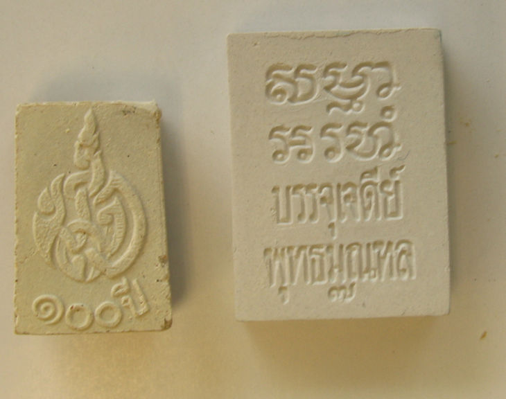 The early batch of Wat Paknam amulets could have been began production as early as 1950 (some prototypes were surfaced over the years). 10 molds were used. One of the main ingredient was believed to be the chalk retained during teaching sessions, added with others materials (minus the blessing by LP Sodth).