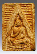 I am not expert into authentication of origin. Perhaps one of the BEST Internet site I can find that provides good verification method for SOME early versions of Wat Pak Nam images by LP Sodh is written by lekwatruak. CLICK HERE or bookmarked http://www.angelfire.com/art/thaiamulet/pn1.html Please take note Lek's site are using a few common form and may not be applying to possibly all early WPN images. Below are some shown pieces in varying colours and textures.