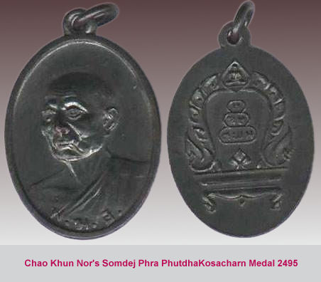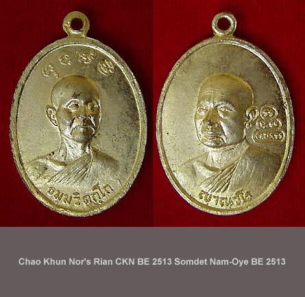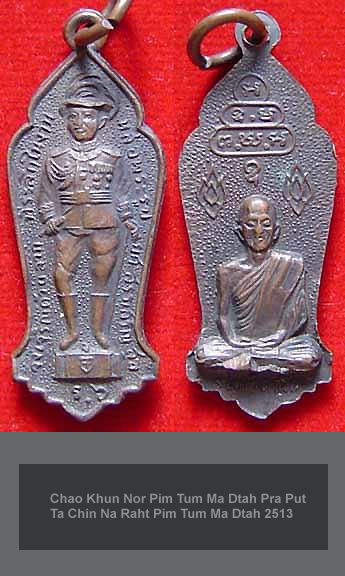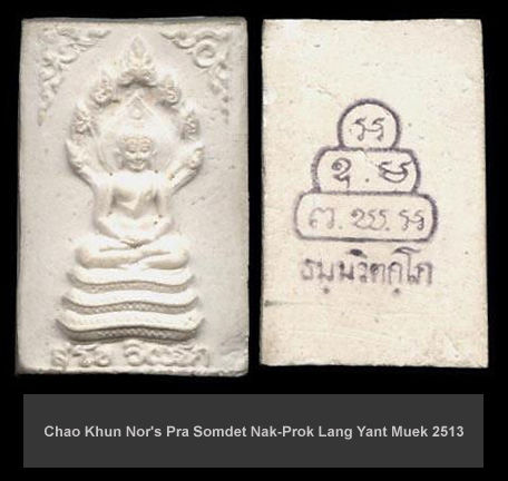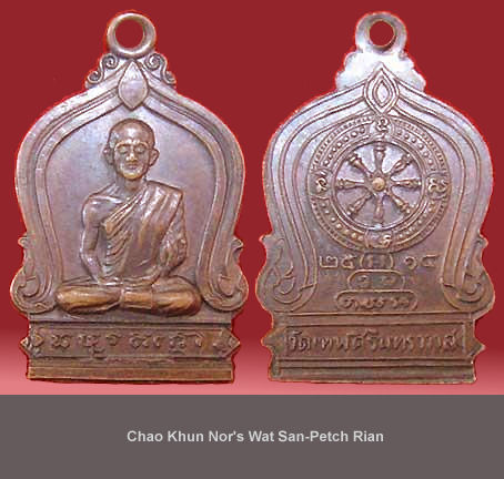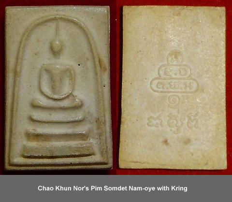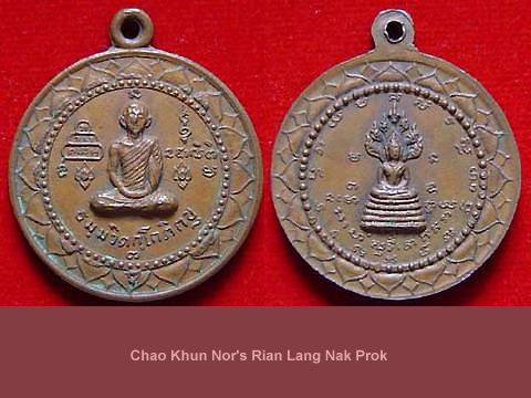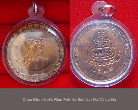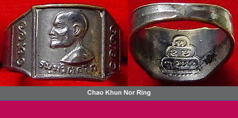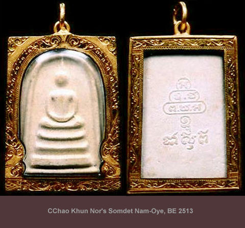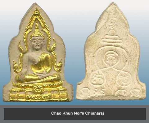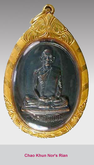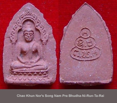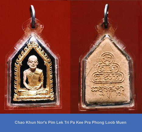 Among the Thai public, amulets, pendants and medallions produced by the late Dhan Chao Khun Nor are highly collectible pieces as the Guru monk is highly worshipped by the Thai . CKN was widely recognized as one of the great Guru Monk of modern times. One way or another, amulets created (or blessed) by CKN also spearheaded a trend for religious products in having a unique symbol endorsed in each of his creation. It was something like a "trademark" used for business products in modern days except that it was for religious reasons. So, behind each amulets made by CKN you will find a very creative-looking three-tiers emblem which almost symbolizes with the famous religious Thai icon himself.