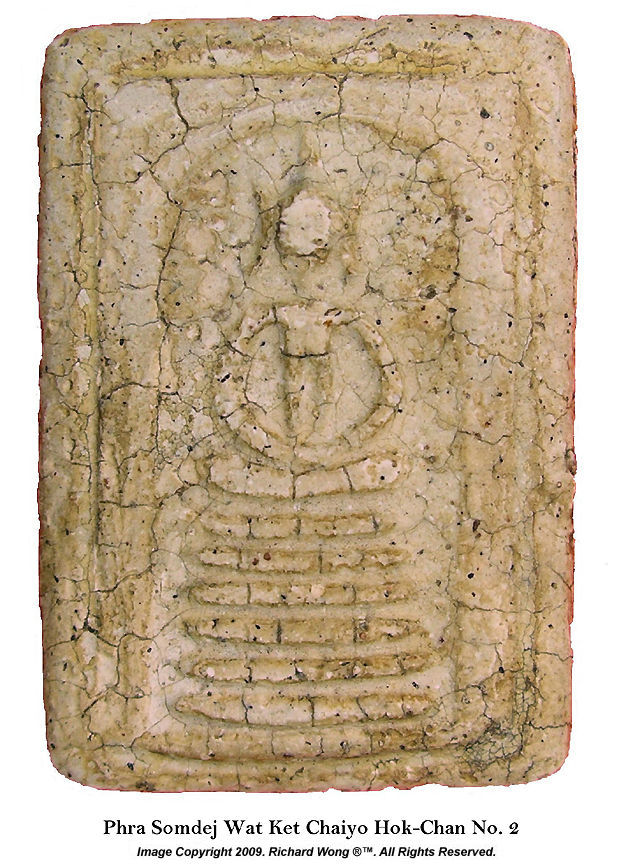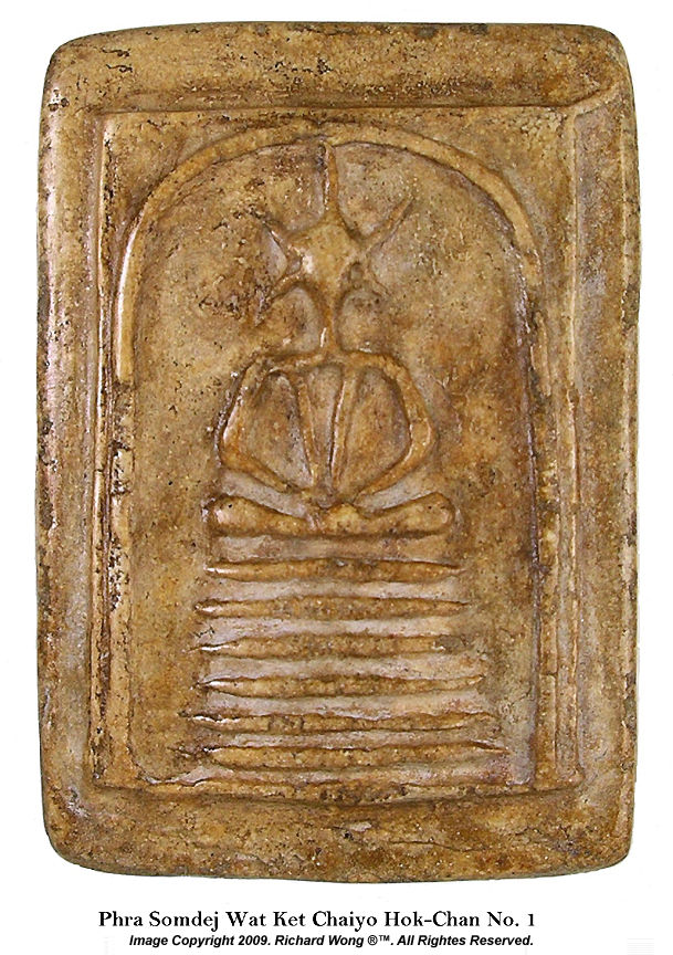Somdej Puttacharn Toh created Phra Somdej Wat KesChaiyo for the remembrance of his mother with the 1st batch make in 2393 and follow later by another 2 batch which were all stored inside the Lord Buddha Bucha at Wat Ket Chaiyo. In total there are 3 design style that was created and claim that a total of 84,000 pims was make : 1. Phra Somdej Ket Chaiyo Hok-Chan - There are 2 moulds which is called Hok-Chan Ok-Tan and Hok-Chan Ok-Rong